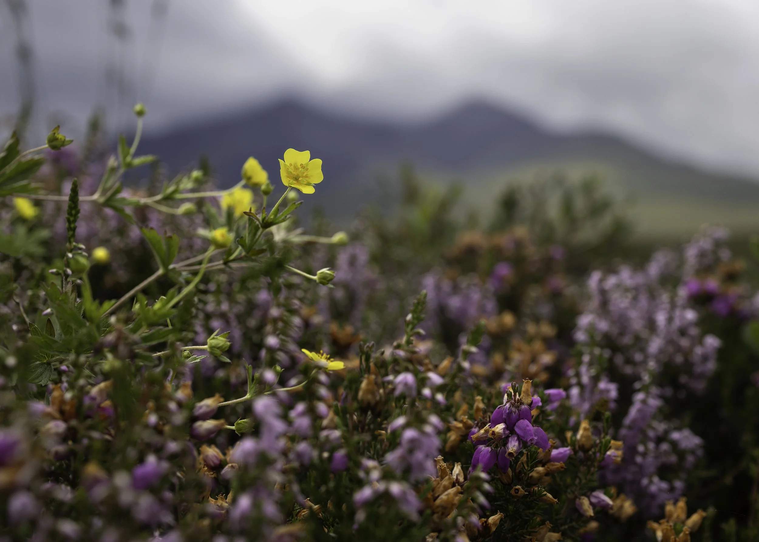Over the next few days, I was struck by the fact that you could live in Skye your whole life and never run out of things to photograph. Still, when you have an impatient toddler along for the ride, you have to be efficient and fit photography in where you can. Luckily, I like photographing waterfalls, and he likes throwing rocks in rivers. That happy overlap made Allt Dearg Mòr a highlight. Again, the foreboding sky set the mood, but I found some contrast in the bright wildflowers in the foreground, and show that it really was summer.